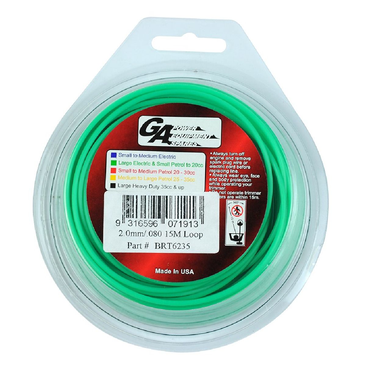 Pro Fit Trimmer Line Green .080" / 2.00mm Carded Loop Length 15m